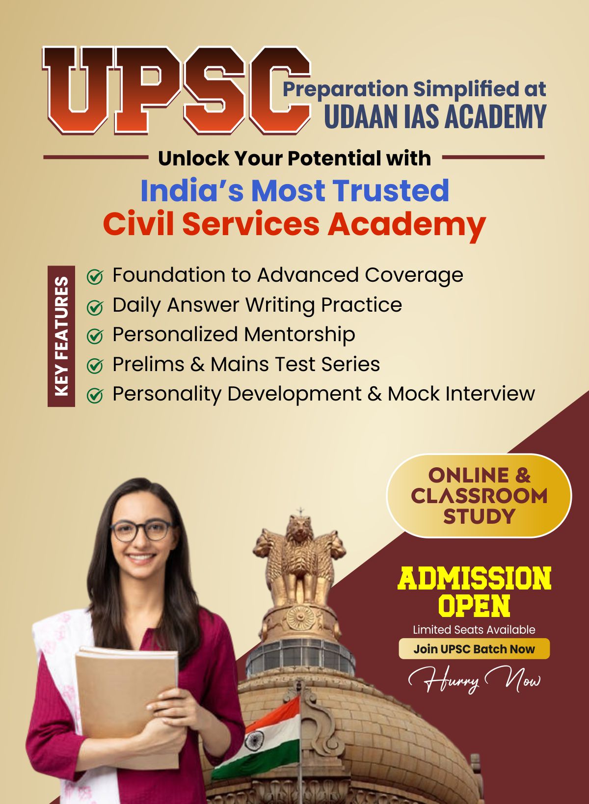 उड़ान IAS अकादमी विद्यार्थियों को केवल मार्गदर्शन और दिशा ही नहीं देती, बल्कि उन्हें नैतिक और अकादमिक ज्ञान भी प्रदान करती है, जो उन्हें देश के भविष्य को संवारने में सक्षम बनाता है।